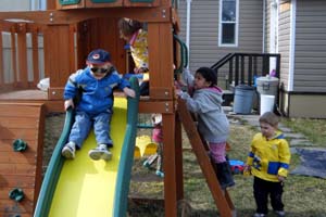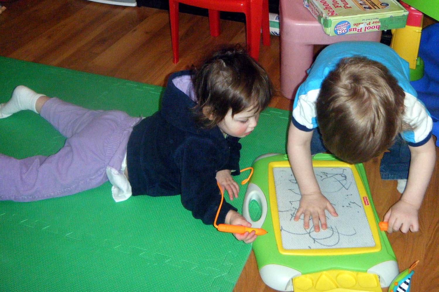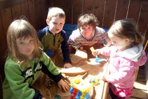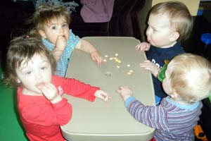 Children are encouraged in sharing and turn taking, as well as to cooperate