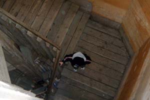 was the first to head back down the stairs. (Down the tower stairs) |