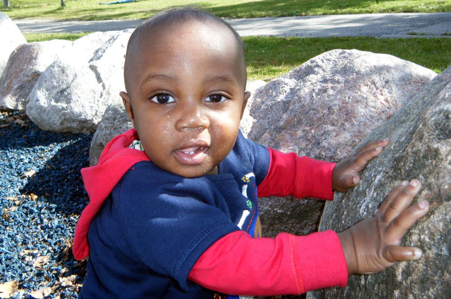 stairs. While the other children were happy to pose for pictures, Leland